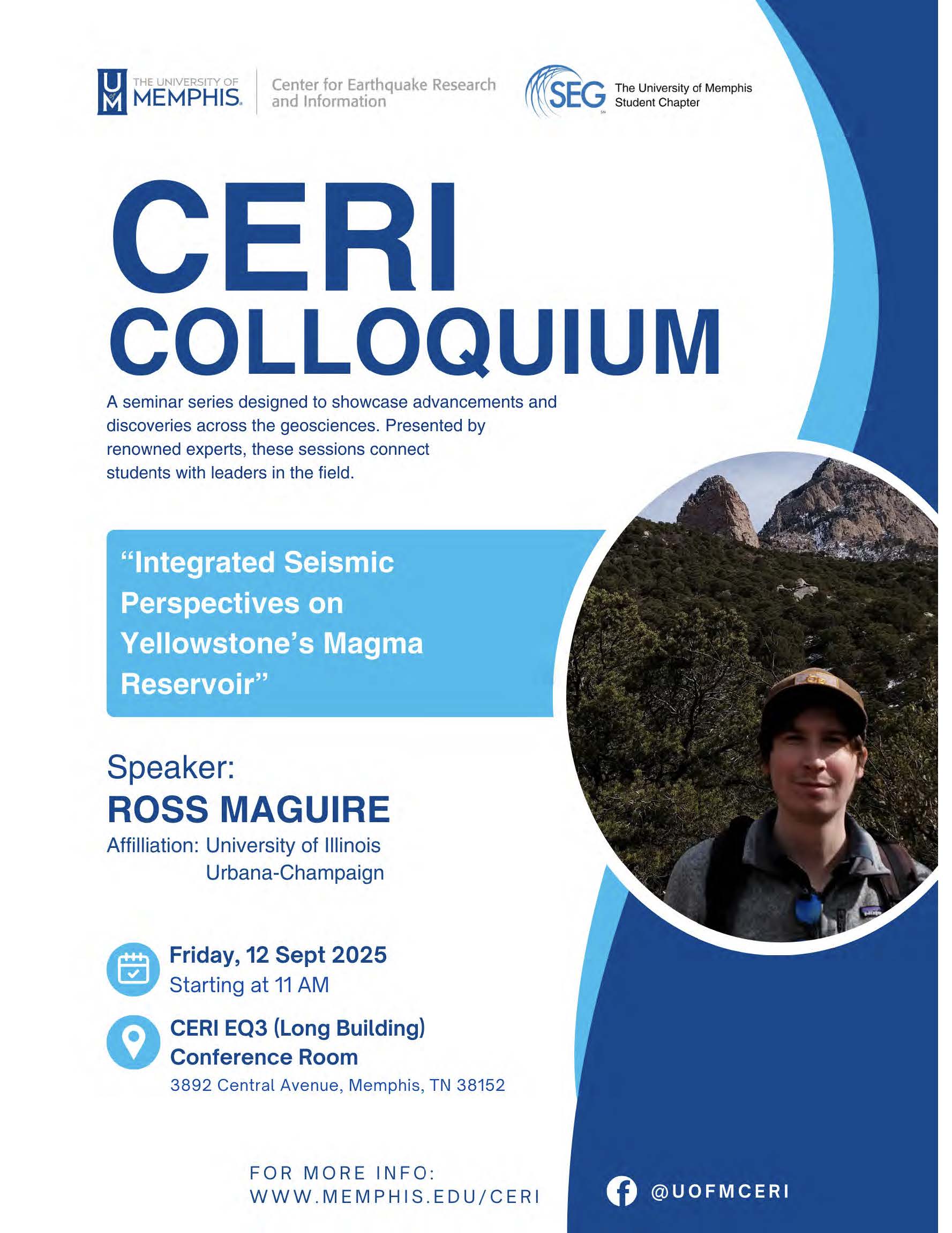 Dr. Ross Maguire | University of Illinois Urbana - Champaign | "Integrated Seismic Perspectives on Yellowstone's Magma Rservoir" | |