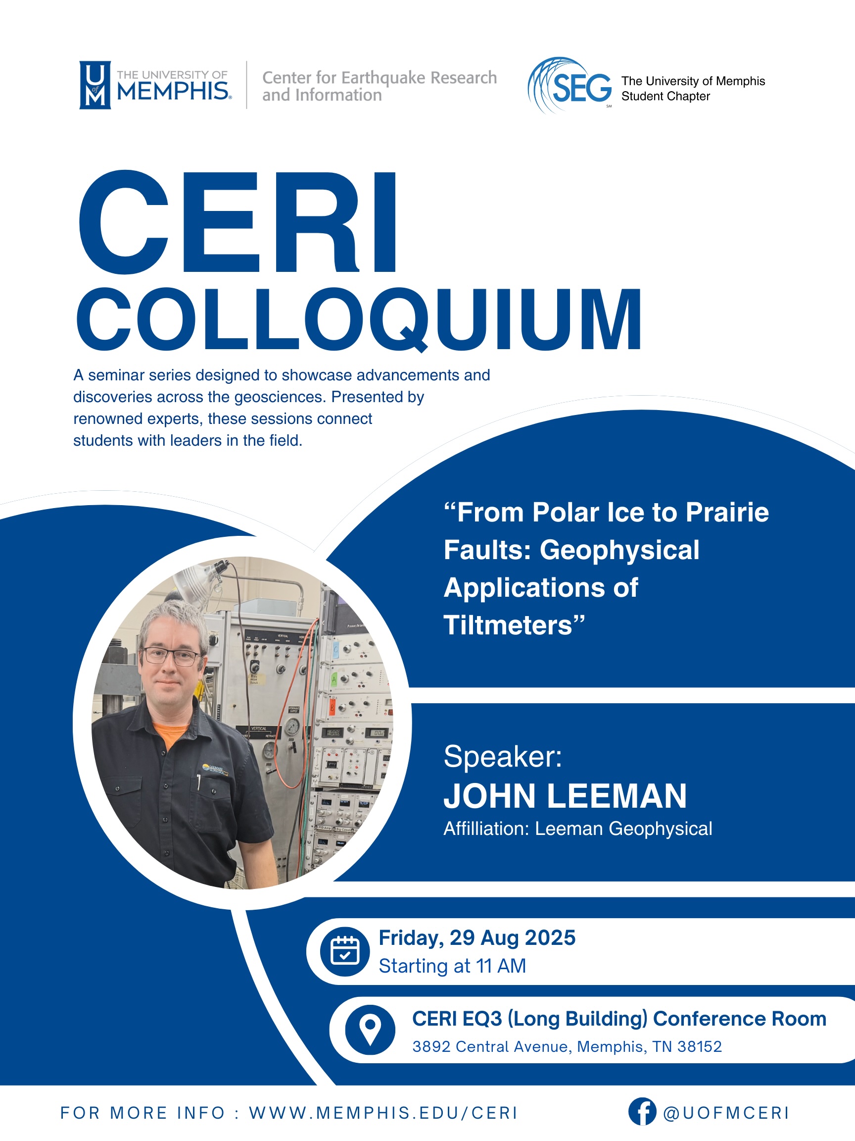Leeman Geophysical, LLC | "From Polar Ice to Prairie Faults: Geophysical Applications of Tiltmeters" |