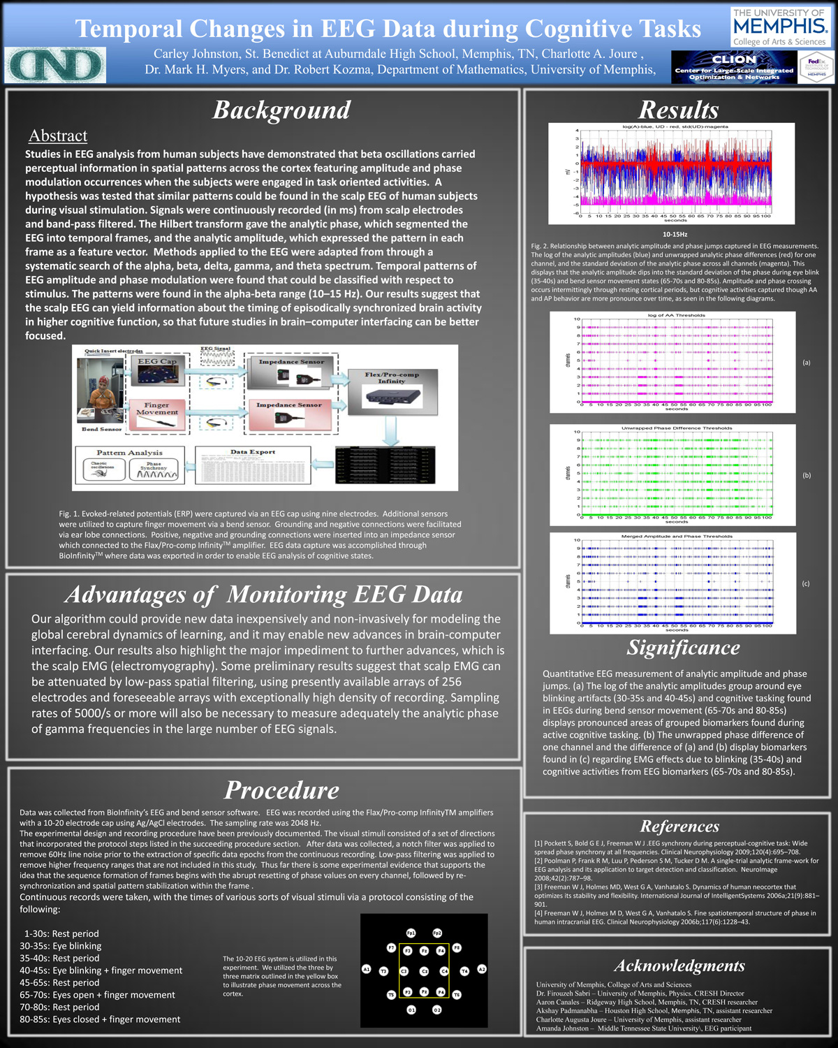 Carley Johnston Temporal Changes in EEG Data during Cognitive Tasks MENTORS: Dr Robert Kozma / Dr Mike Myers