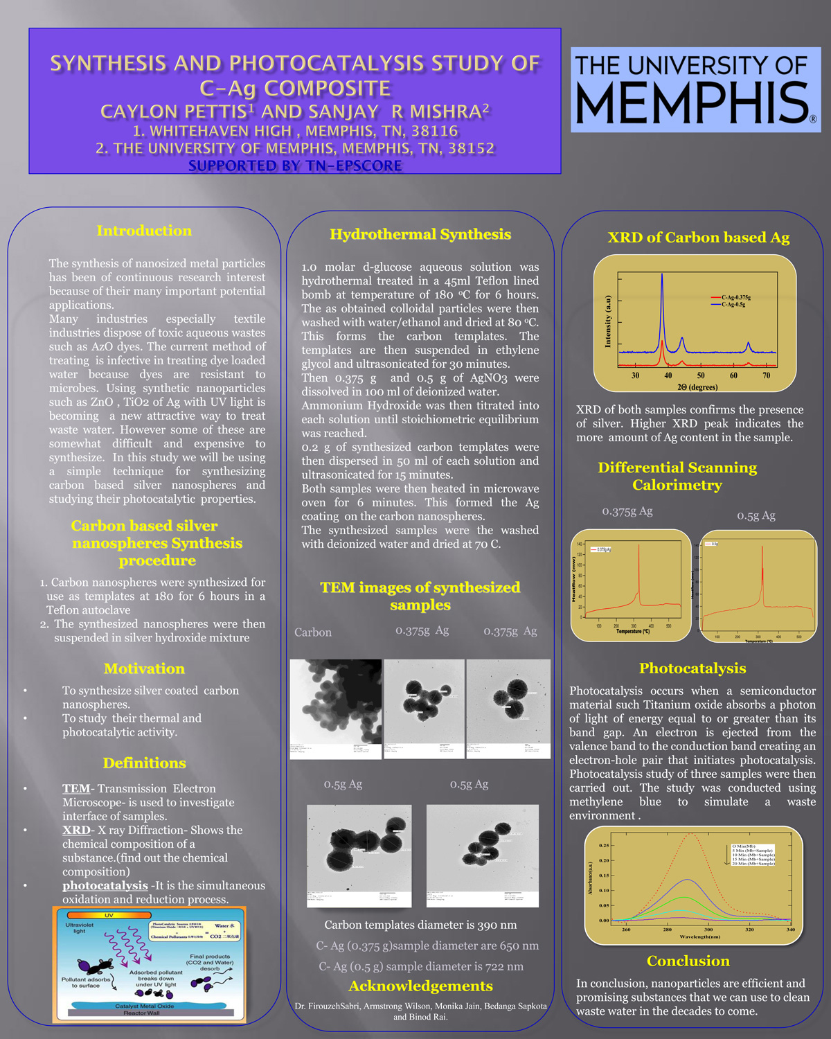 Caylon Pettis Synthesis and Photocatalysis Study of C-Ag Composite MENTOR: Dr Sanjay Mishra