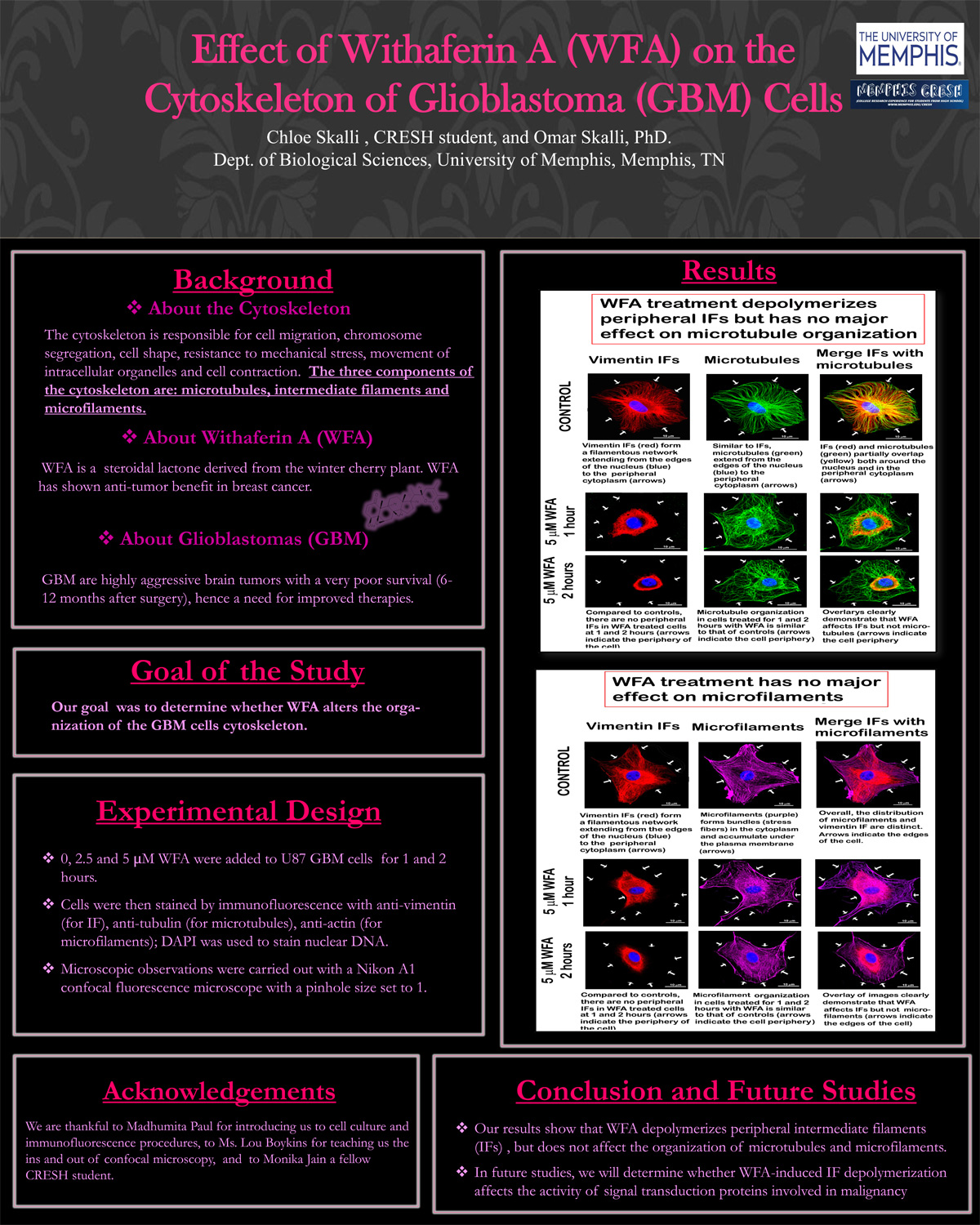 Chloe Skalli Effect of Withaferin A (WFA) on the Cytoskeleton of Glioblastoma (GBM) Cells MENTOR: Dr Omar Skalli